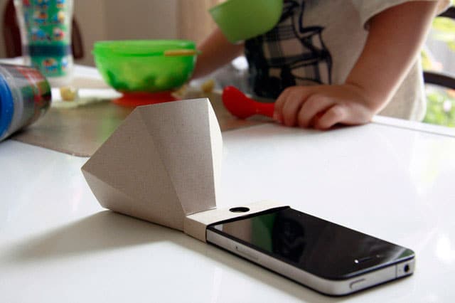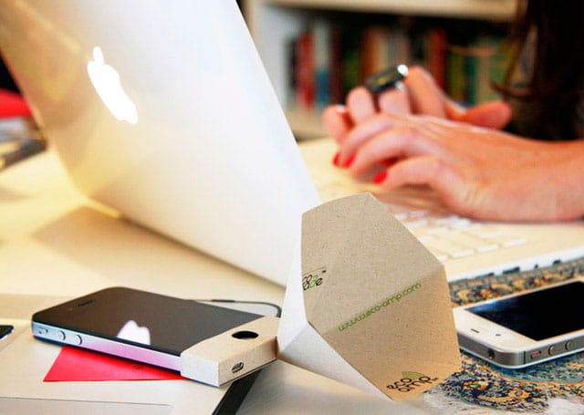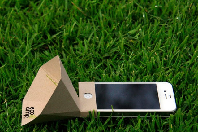 This nifty little thing is called an eco-amp, and it was created by eco-made. It’s an amp for your iPhone, and since it comes flat (you fold it into this horn shape), you can unfold it to transport it or store it. What a cute idea!