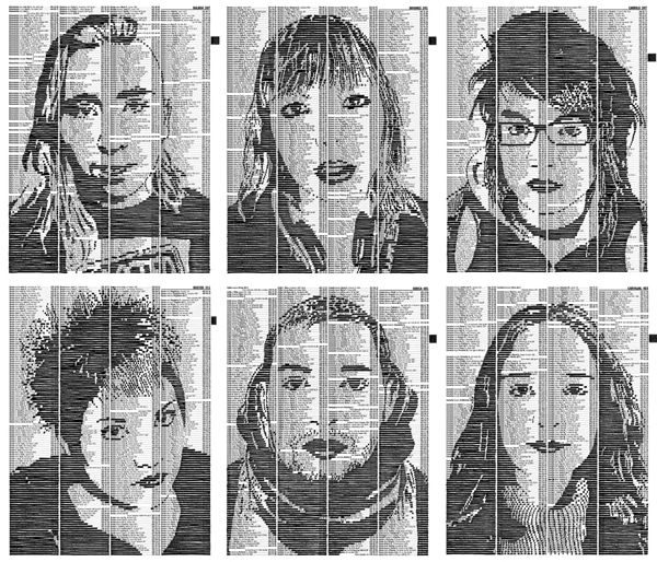 His art, which I think anyone will find quite extraordinary, is pretty much full of portraits created using a marker in a phone book. And by striking over the names and numbers on each page, he manages to form patterns that simulate shadows and features of the faces he draws. It’s a perspective that I haven’t stumbled over before, and that I find quite intriguing. We have all heard about great code breakers who see patterns in pretty much everything. Carlos sees them in phone books, which in itself is not a little feat. Amazing!