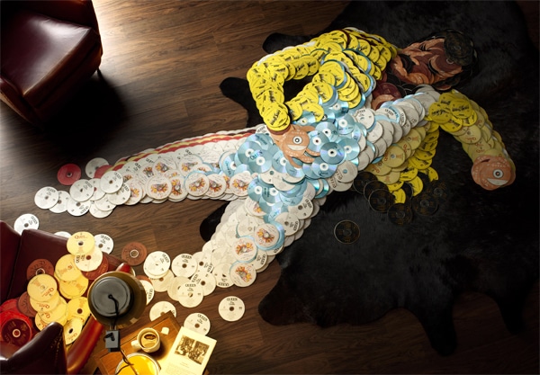 Out of thousands of CDs, they have been able to make beveled creative portraits of some of today’s most legendary and celebrated artists. They call the project Piracy. It’s amazing what a plastic disc can become when it’s put in the right position. Have a look and let your mind wander off to a day when Billie Jean and Barcelona were the top tunes on the radio. When I look at these carefully placed CDs that make up these impressive works of art, my head starts spinning at the same pace as the CDs in these creative portraits did back in the day.