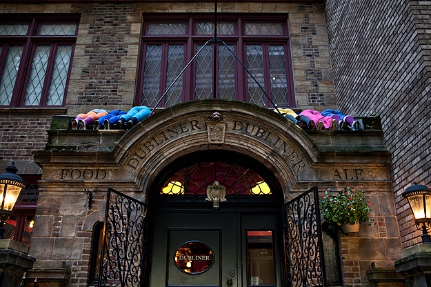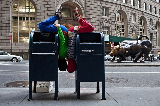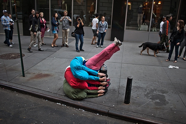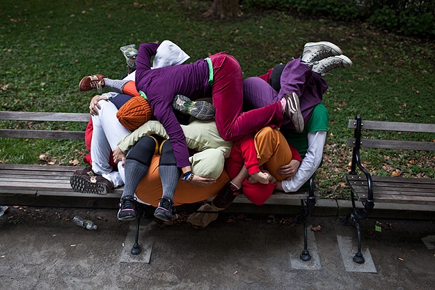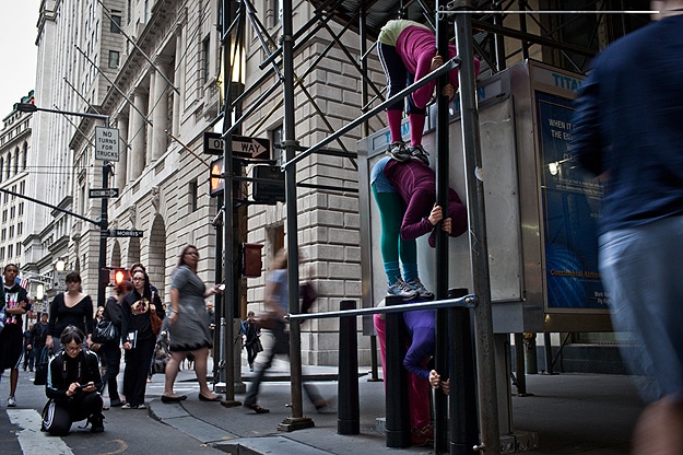The closest I’ve seen to this is this typography installation made with a typeface created from humans, but still, these sculptures are very different. The pictures below are from a recent presentation on the streets of lower Manhattan called “Bodies in Urban Spaces” by choreographer Willi Dorner. This performance was a follow up to a similar one in 2009.