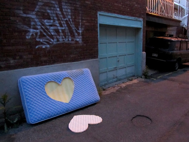 Roadsworth, a Montreal based street artist, recently began a new project called Dead Hearts. He did this by creating heart stencils all over the city. As you’ll see in each image, he carved or created a heart from the environment for each picture. These hearts definitely do not look dead to me.