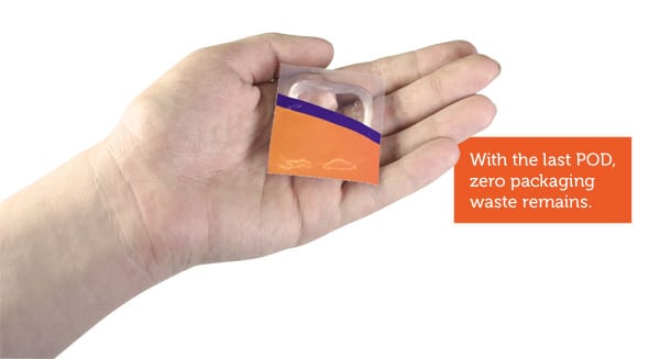 Imagine what it would be like to use a bar of soap in the shower, and the box that the soap came in dissolves in the warm water right there during your shower. In the Tide laundry detergent example below, you would just tear off the PODs one at a time, and when you use the last one, they would all simply be gone. There’s no cardboard box or plastic jug to dispose of afterwards. Think about how much waste we could eliminate if this became the future of package design. You can learn more about these ideas on the Disappearing Package.