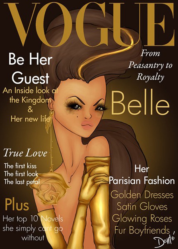 I noticed that Dante very cleverly incorporated characteristics of real supermodels into these illustrations. You’ll see the classic model “blank stare,” the pouty lips and the unnatural poses. These are fabulous. Many people have asked Dante to create more princesses on Vogue covers (i.e. Alice, Mulan), but he has decided not to. That’s okay Dante because we are thrilled with this collection of eight. You can check out more of Dante’s work on deviantArt.