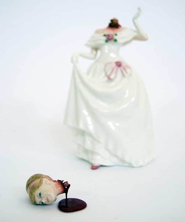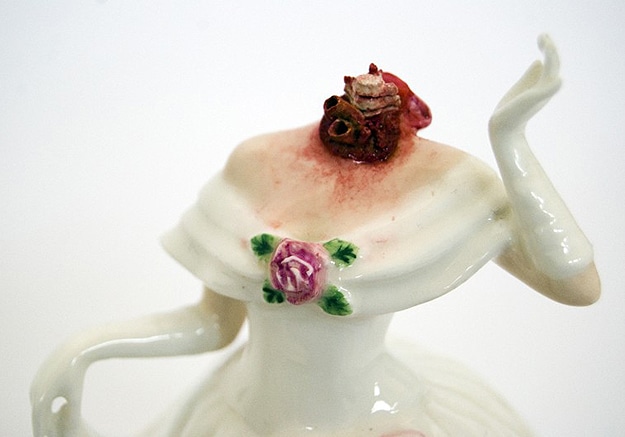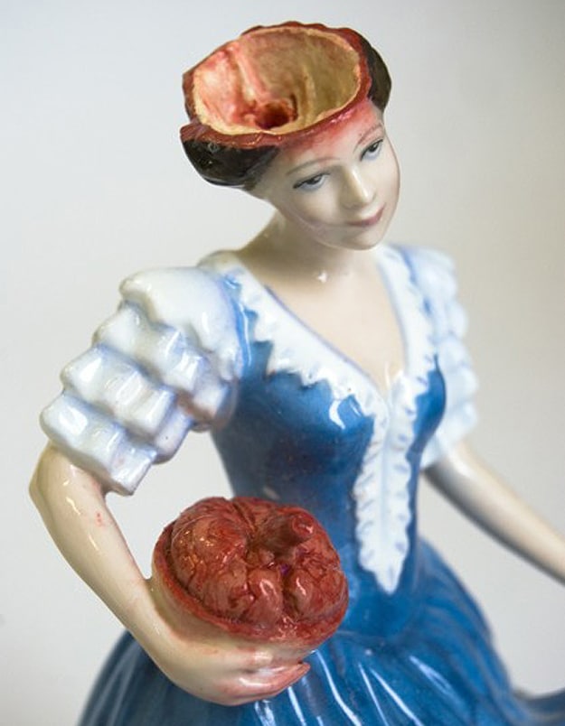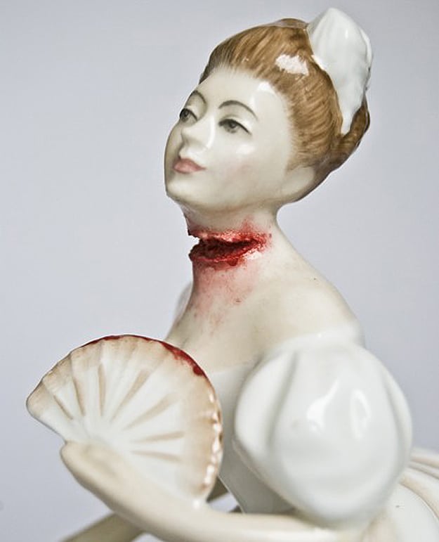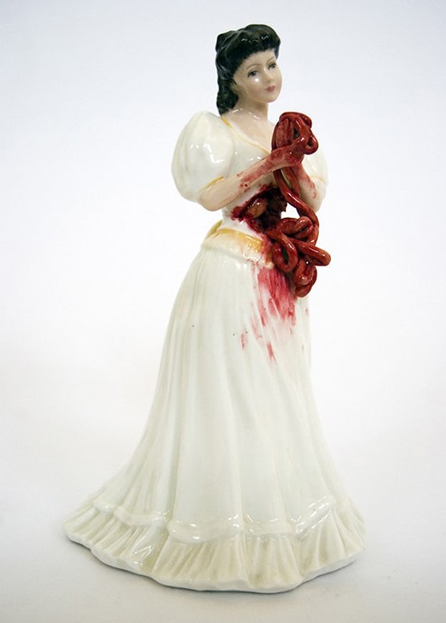 Now, tell me, what would possess this artist, Jessica Harrison, to create these figurines in the most disturbing way? Could it be possible that she hates these sculptures and this is her way of lashing out against all the little old ladies that collect them? Or, perhaps she is just a zombie lover, kinda like me! Or, maybe it’s all about Hannibal Lecter… “I’m giving very serious thought to eating your wife.” Regardless of her inspiration, I’m digging it!
