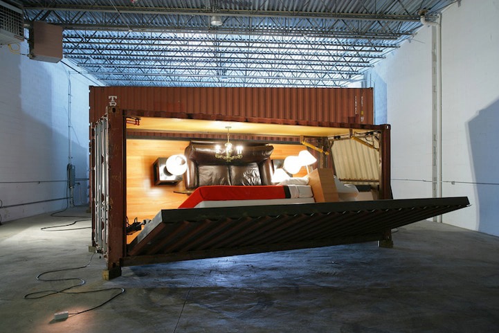 This shipping crate home is part of Adam Kalkin‘s project called Push Button House. He is now working on his shipping crate 2.0 in a new project called Push Button House 2. Unfortunately, these houses aren’t for sale, they are just an expression of design, creativity, sustainability and innovation. This all kind of reminds me of that Starbucks Location Built From Recycled Shipping Crates.