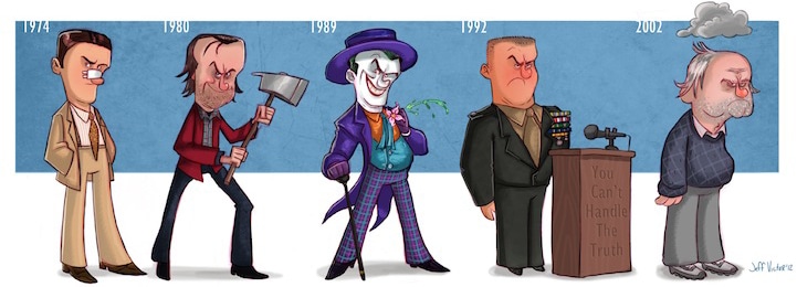 If you are a big time movie buff, I know what you are going to say…he left out some of the movies. That may be true (at least according to Reddit). However, I see actors and actresses in old movies all the time and don’t even realize it’s them so does it even matter? I just found out yesterday that Johnny Depp was in Platoon, and I’ve seen that ’80s classic a dozen times. Charlie Sheen looks so young and sane in that one, but I’ve digressed. Jeff only said he was going to illustrate the most famous movies, not all of them. You can see more of Jeff’s fun illustrations on his blog. For some odd reason, when I look at his blog, it reminds me visually of The Jetsons. He’s a very talented artist, and these 8 actors and movie characters are a lot of fun to look at. Enjoy!