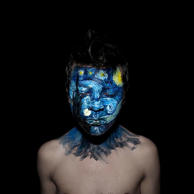 Today I would like to share with you another artist who also creates some insane designs on his face, but he uses his entire face and part of his upper body. Andy Alcaia creates unique self-portraits by painting his face to look like famous artwork. If you browse through the collection below, you might recognize the works of Vincent van Gogh, Andy Warhol, Piet Mondrian, Banksy, and more.