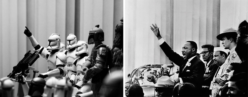 I remember Diana writing an article called Famous Photographs From History Recreated With Lego that has some of these images as well. Those photographs are all about LEGO and are masterfully taken, just like these. The question is whether or not you prefer LEGO or Star Wars when it comes to our history recreated in geeky images. Some of these photographs (the originals I mean) were actually posters that some of us have had in our teenage rooms at some point in time. It is remarkable how we are able to reinvent things in order to keep them fresh in our own minds. I wonder if people in about a thousand years from now will look at these and wonder what the hell was going on around here during the beginning of the 21st century. I would if I were one of them.
