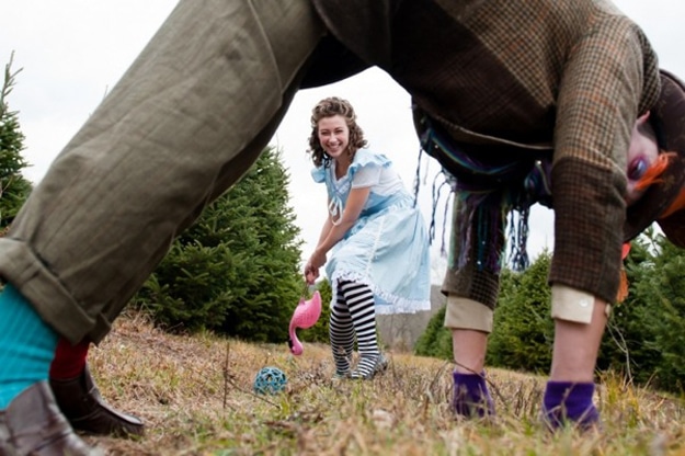 One detail I didn’t mention until now is that these were taken on the day Erin and Matt got married. These are their official wedding photos, and I’m sure they will treasure them for the rest of their lives. Can you imagine having these for wedding pictures? What a nice change from the traditional photos we normally see. I think it would be tough to find any Alice in Wonderland cosplay that’s better than this! If you’d like to read more about Alice in Wonderland, check out the Psychedelic Version or these 16 Unusual Alice In Wonderland Designs.