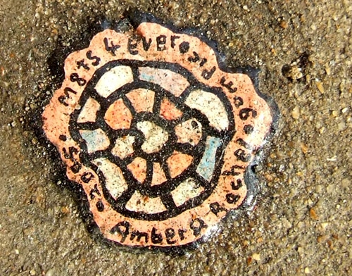Each one of these colorful little designs below is a piece of gum stuck to the concrete.