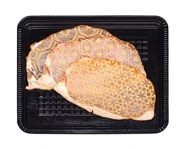 We’ve all seen meat etched with words, right? Here is an example of etched beef jerky. However, have you ever seen raw meat with a design on it? The carnivore in me is salivating right now. Simply put, the folks at Repper Patterns do just what their name implies, they put patterns on stuff. In the pictures below, they put a pattern on raw bacon/ham. I wonder if I have time to get some of this to take home with me for Thanksgiving. I could sit around chomping on these pretty designs all day long!