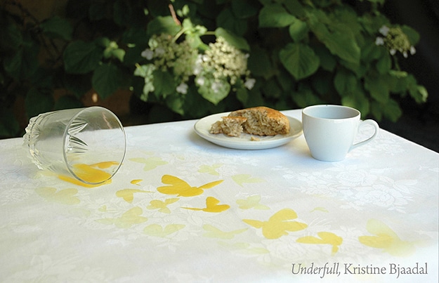 This would also be fun at a dinner party where something always seems to inevitably get spilled. Instead of the host running to grab a towel, everyone can enjoy watching the new patterns emerge. I am very messy; I admit it. I need about five of these tablecloths in my house! Designer Kristine Bjaadal says it turns spills into poetry. I like this a lot!