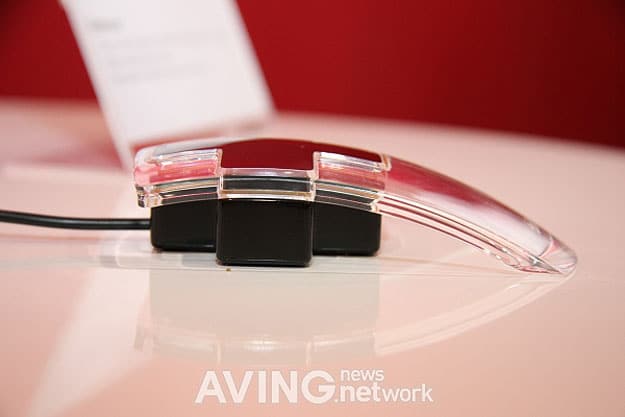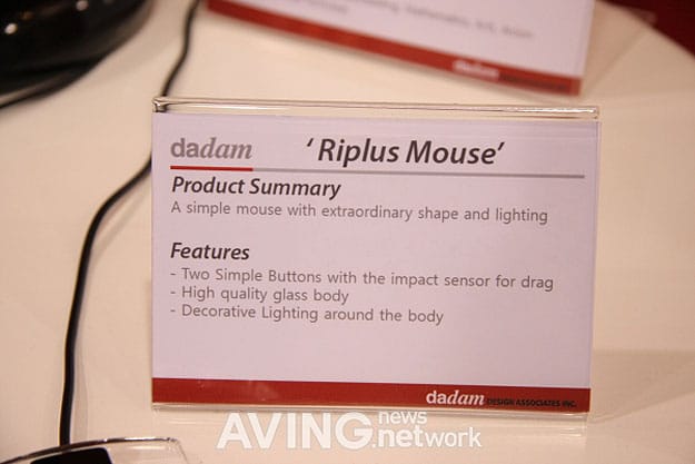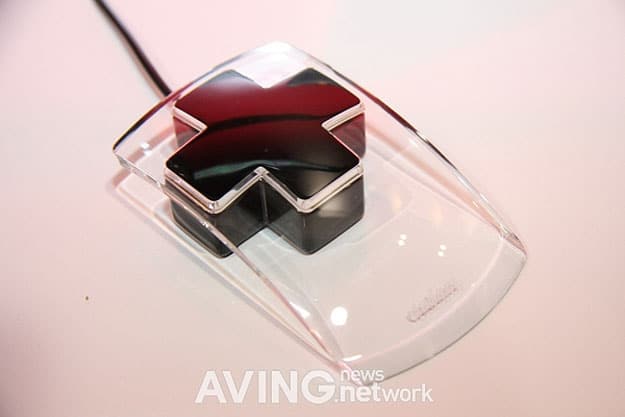 This particular mouse caught my attention because of the design. I have good news and bad news about this mouse. The good news is that it will appeal to trendy geeks. It’s sleek and sophisticated looking. It’s called the Dadam Riplus mouse, and it’s entire body is made from transparent glass. All of the technical aspects of the mouse are enclosed in that black cross. It also lights up to add style to your desk on those late nights when you’re working in the dark.