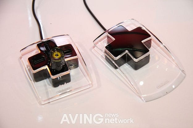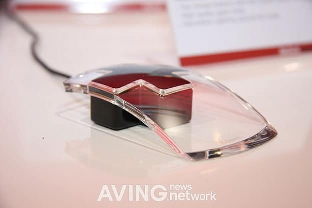 This particular mouse caught my attention because of the design. I have good news and bad news about this mouse. The good news is that it will appeal to trendy geeks. It’s sleek and sophisticated looking. It’s called the Dadam Riplus mouse, and it’s entire body is made from transparent glass. All of the technical aspects of the mouse are enclosed in that black cross. It also lights up to add style to your desk on those late nights when you’re working in the dark.