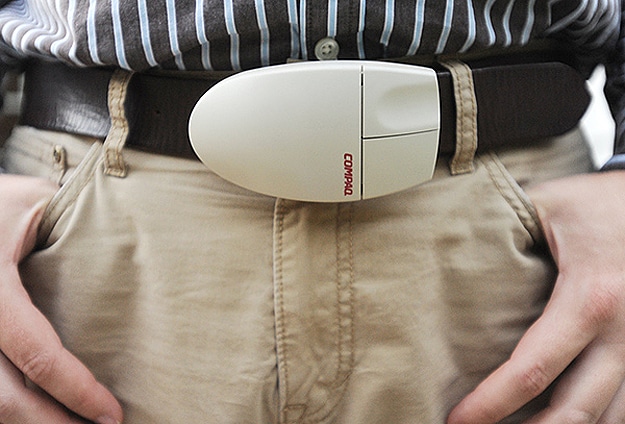 They sell things they’ve knitted, beaded, and even made from the comics from their local newspaper. PJ found a box of old mice he was saving for e-waste day so he could recycle them. He suddenly realized they were the same size as his belt buckle, and the rest is now a match made in geek heaven. Surprisingly, they sell these for only around $22 each. Nice job! I love it!