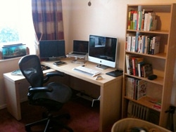 John: Right now all of Lyrical Media’s staff is home-based. There’s only a few of us, and we’re all in different countries across the world, so it doesn’t make sense to have a “real” office for anyone. My desk is fairly neat at the moment, but most of the time it’s pretty messy!