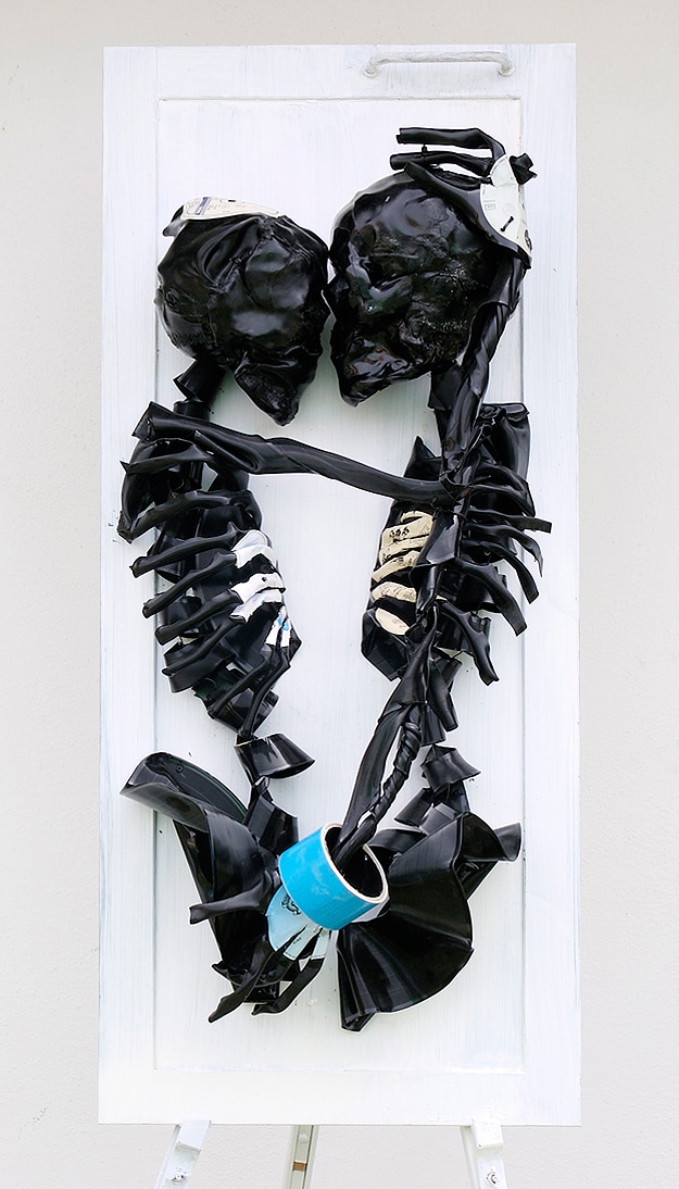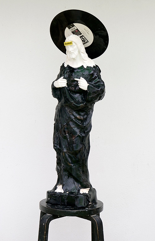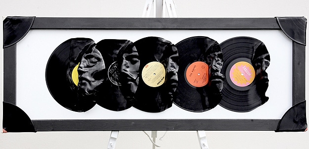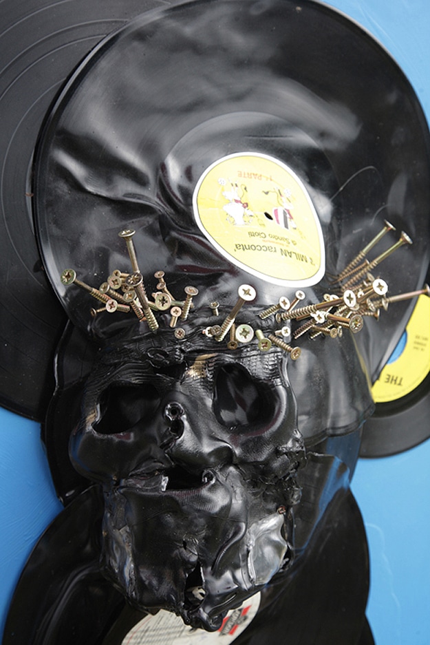 Today I’d like to share with you the retro vinyl record artwork of Angelo Bramanti and Giuseppe Siracusa who collectively call themselves L017. Their work is well known in the design community, and they’ve recently updated their portfolio. They take vinyl records and melt them down into warped statues, portraits and bizarrely interesting 3D art pieces. You can learn more about these artists on their website L017. Wow, I love the skeletons below! If I were to see that one in a gallery, I would never guess it was made from melted vinyl records.