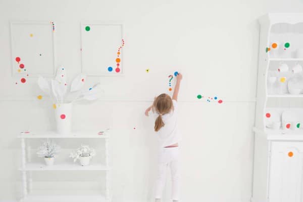 The time lapse photography tells a story that we rarely see in our ordinary lives. Sticker by sticker, the children painted the room in different colors. It’s amazing what dot stickers can do to a room and how it can transform an emotionless space into a warm, cozy and playful area which you can never get enough of. My only question is how the heck they will manage to get all of those dot stickers off… everything! It will probably take years and years to get them off without leaving a mark. Do I hear chemical solution being sung in the background. Scary!