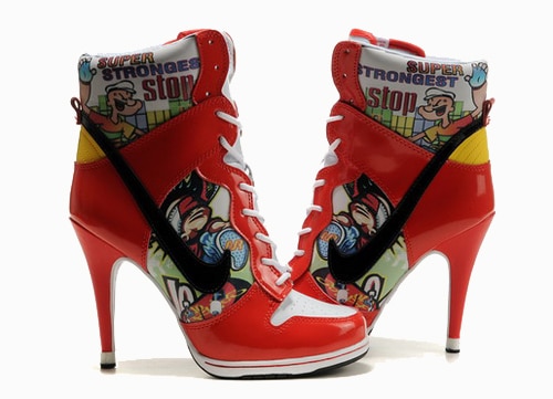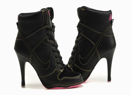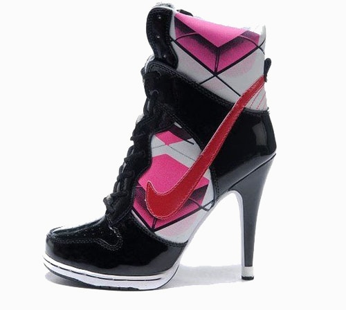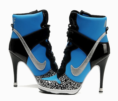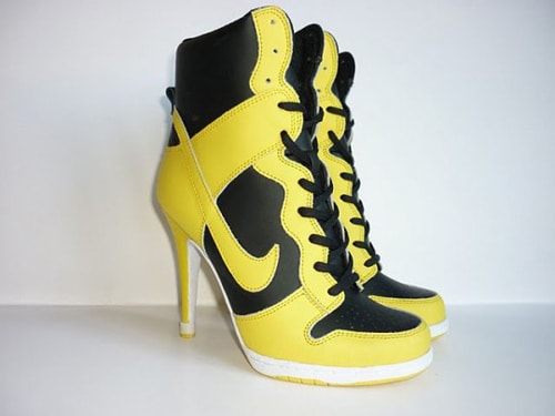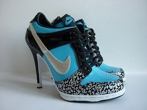 I’m a big fan of high heels, and I always have been. Shopping for them is especially fun. There is nothing that can lift a Cosmo girl’s spirits like trying on stilettos at a department store. They make our legs look long and lean, and I’ve got some nice big ‘ol calf muscles from wearing them over the years. These high heel Nike dunks are in a league of their own though.