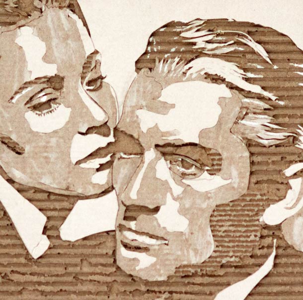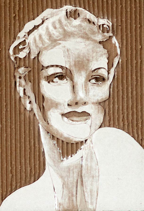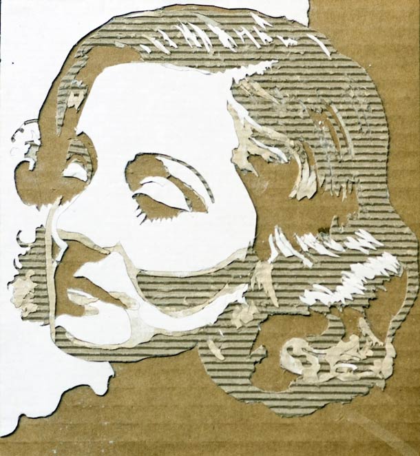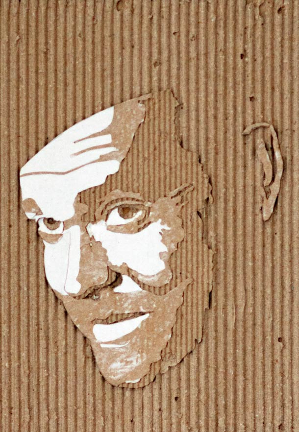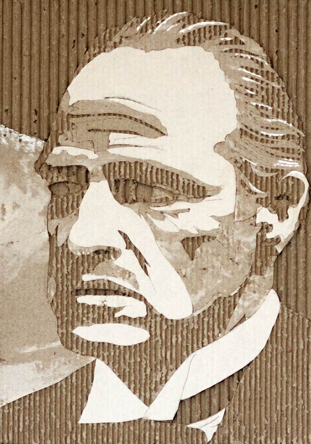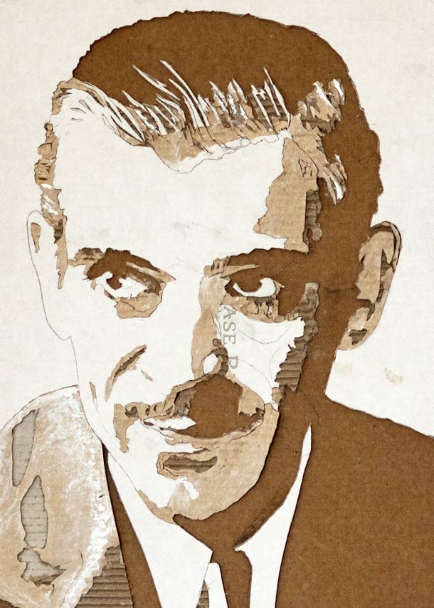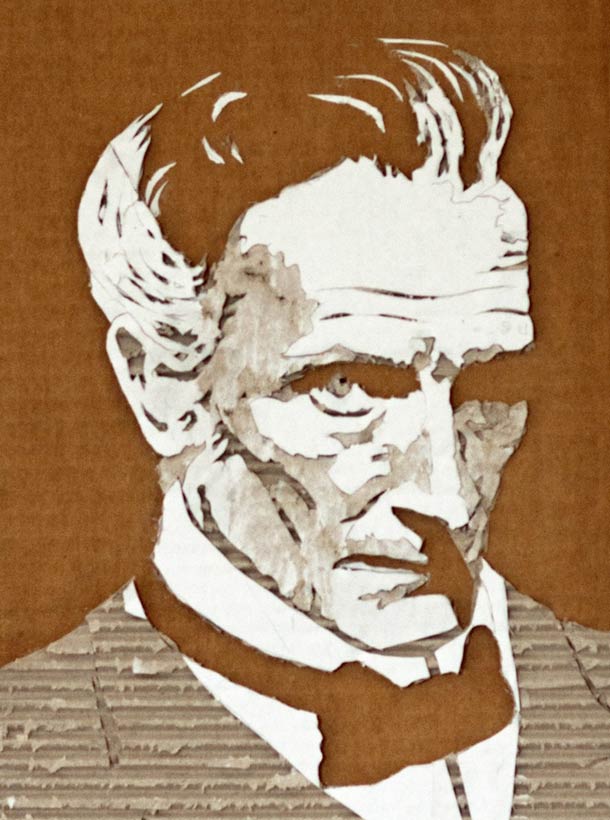 Using a scalpel and a fresh mind, Giles has managed to perfect the skills he uses to create these cardboard portraits which are mind-boggingly stylized. If you have a big enough sheet of cardboard, it would make for a formidable wall piece that would surely impress any guests you might have. The process is simple and could be described as nothing more complicated than peeling off the layers of the cardboard in order to create the effect of shadows and detail.