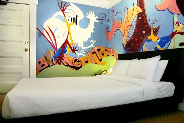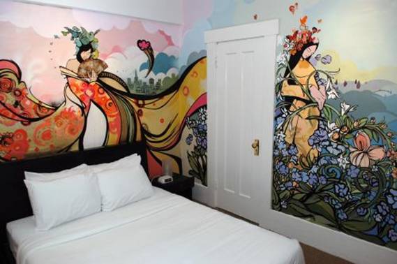 Located in the french quarter of San Francisco, Hotel des Arts offers a unique experience of ‘living in art’. Highlighting contemporary local artists such as Sam Flores, Vinyl Killer, Jeremyville and more, the hotel offers a variety of painted rooms as well as all the traditional services. Each of the rooms has been painted by the artists as well as incorporated their works in other hotel staples like furniture, doors and a variety of surfaces. The hotel website lists all 38 rooms with pictures, artist statements, reviews and links to the artists sites. So if you find yourself traveling to the Bay area, book your room in the ‘art gallery.’