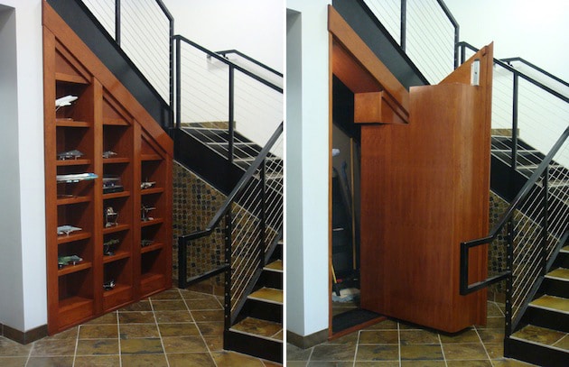 Some secret rooms are lame because even though they are hidden, the homeowner does something dorky like put a doorknob on the entrance. Doh! To me, that’s not a secret room. A secret room or passageway is an entrance that is hidden, and when you open it up, it’s like a whole new world opens up inside. It’s kinda like having a real life TARDIS. So the question is, if you could have a secret room or passageway in your house, what would it be like? What would be inside? Where in your house would it be?