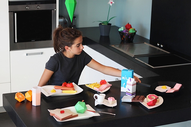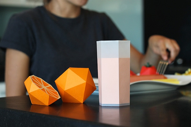 Now let’s switch to breakfast… how about a calorie, carb and fat free breakfast of eggs, fruit, sausage, toast and even a smoothie? Sound good? Well, it sure looks good. This creative papercraft breakfast was designed by Paper Donut for Arjowiggins.