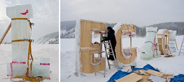 Whoa! I’ve seen a lot of creative typography installations over the past few years, but I’ve never seen anything like this before. These words created out of ice are really a cross between ice typography and ice sculptures. I have a feeling this is one of those artful creations where the pictures don’t do it justice. I’m sure seeing these words in person would be phenomenal.