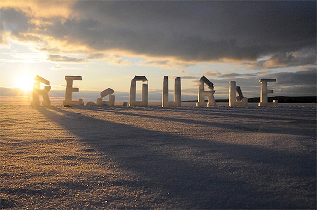 Artist Nicole Dextras created these by pouring water into letter molds and freezing them. She then placed them in certain places to capture just the right photographs. Of course, the words she chose to make are meant to be thought-provoking. It’s hard to see the scale of these letters in the pictures. Some of them are 8 feet tall!