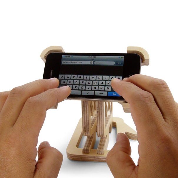 This brilliant idea comes from a man who had a dream as a young boy, but never fulfilled it until he was about to retire. The first puppy to leave the Young-Gun Cho (aka Kenny Cho) brain factory is this IconicStand. It’s a stand for the iPhone 4 which enables you to easily pivot the iPhone in either landscape or portrait viewing mode. The fact that the whole thing is created in birch wood is truly a selling point.