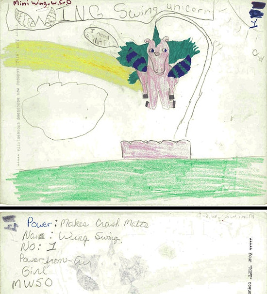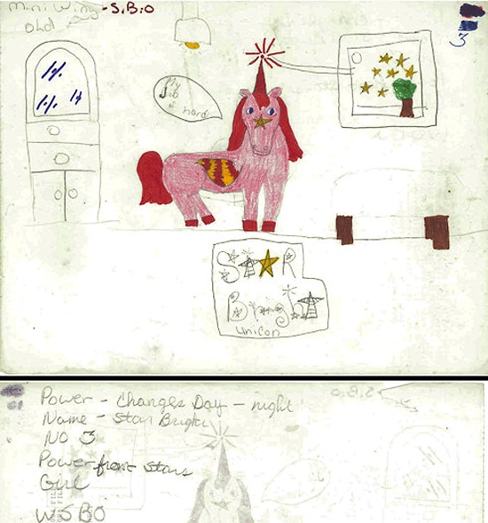 I didn’t save any of my unicorn drawings from when I was a little girl, but apparently he did. His sister recently found these in a folder and shared them online. When Shawn drew these, he did it in hopes that they would be developed into toys someday. According to the site, “You can find Shaw hitting refresh on his emails waiting for Pixar.” Cute. He was so organized at only age 10. Each one of his unicorns (there are dozens of them) are numbered with a code and themed. They also each have a special power. Aww… :)
