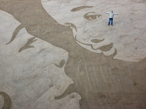 What is it with these artists who feel the need to make humongous, time-consuming works of art that simply cannot last? Remember my article on the Snowy Crop Circles? Well, now I’ve found someone who is making amazing works of art on beaches! Yet again, another way in which I feel completely inferior…It’s all I can do to draw a heart in the sand.