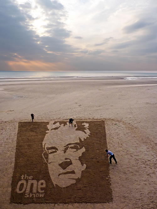 Not only does the Sand In Your Eye team complete amazing sand art for promotional purposes (yes, I think you’d have to pay me well to spend hours on something the tide will just take away), but they also do amazing sand and ice sculptures, and host team building workshops. Can you imagine taking your team to the beach for the day and working together to build a piece of art the size of a football field, then climbing into a helicopter, or to the top of a cliff to see the result of your hard work? Yes, I agree, I think this might be the “ultimate in corporate team building.”