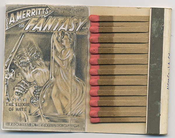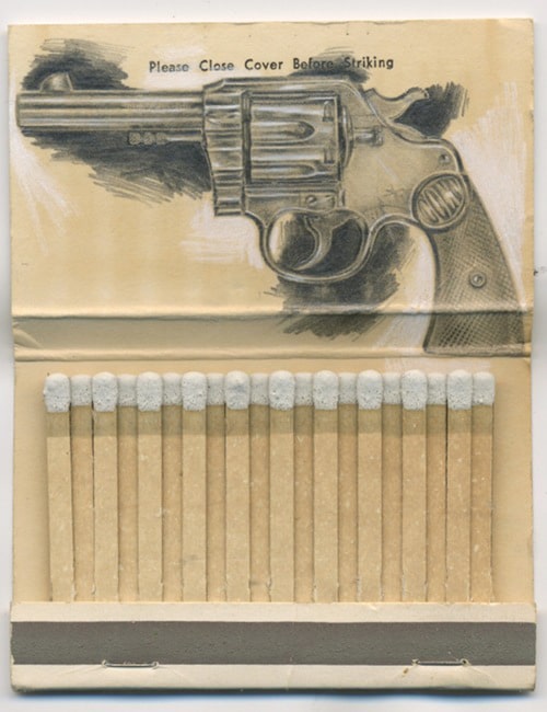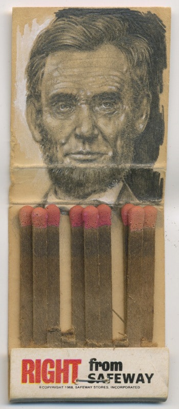 Jason finds these books of matches at estate sales, flea markets and antique shops. It would never occur to me to even save those. I’ve always just thrown them away. It’s another example of how one person’s trash is another person’s treasure. He uses graphite and sometimes a hair brush to complete his drawings. Incredible! You can view more of his matchbook art on his website at Jason D’Aquino.