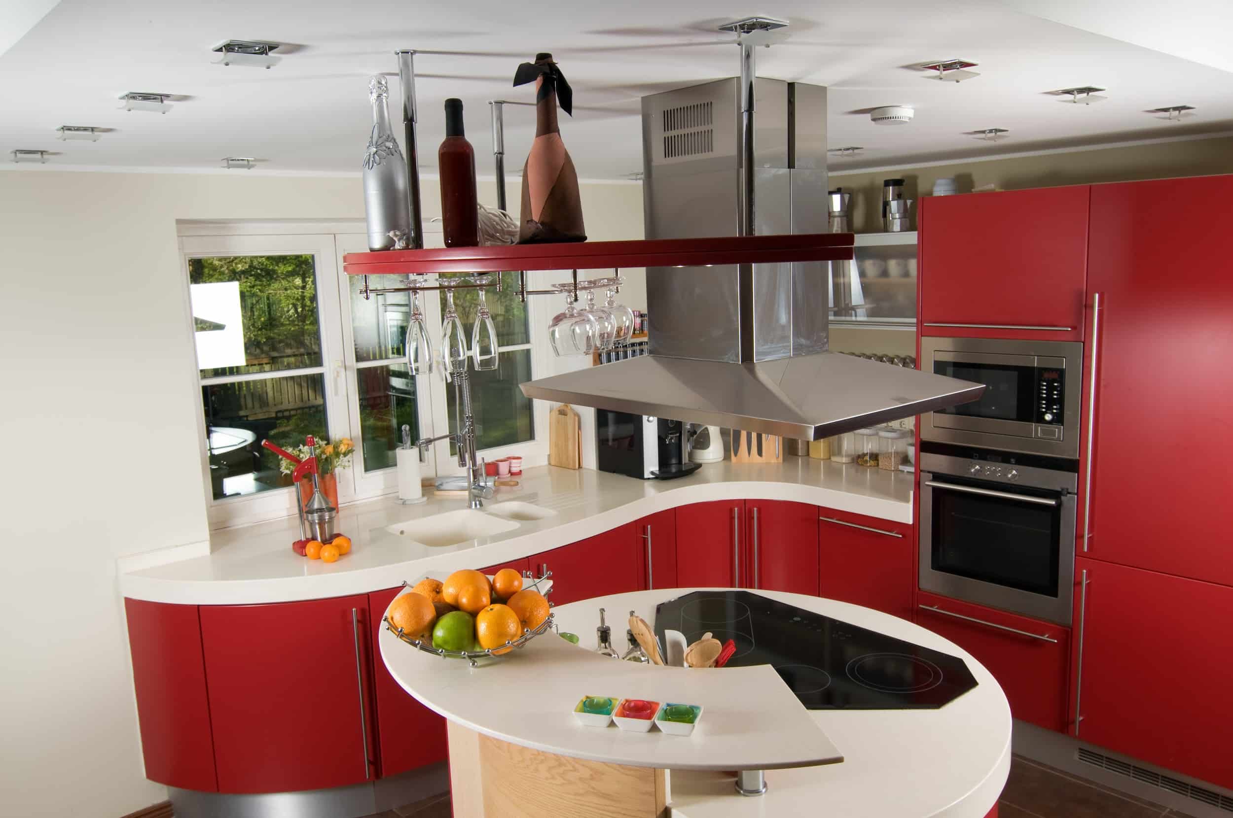 The raised surface of the island gives it a little of extra character, allowing for condiments or decorative ornaments. The deep red shade is also a color we haven’t seen much of in past kitchen color trends making this a truly maverick design.