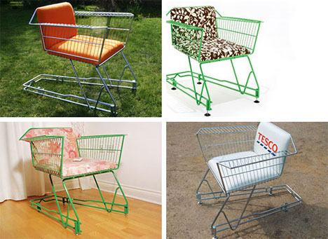 Of course, different designers have different styles. Designer Max McMurdo also turns broken shopping carts into furniture. His take on it is a little different, according to his website, he “avoids traditional eco materials in favor of contemporary finishes, fabrics, and above all, style.” Below is an example of his refurbished shopping carts.