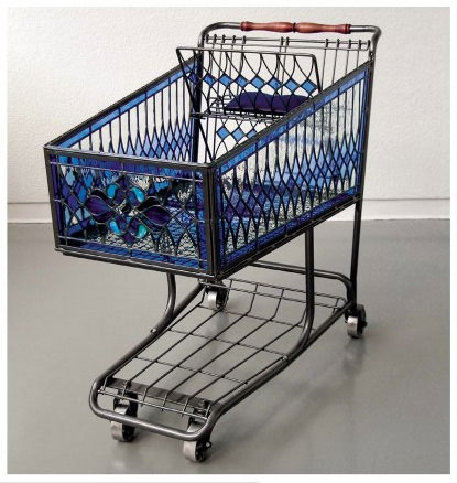 This shopping cart below is yet another style. I don’t know who to give credit to for this one, but I think the detailed stained glass work is absolutely beautiful. My mother is a stained glass artist, and I know from watching her that this isn’t easy. I enjoy and appreciate this design a lot.