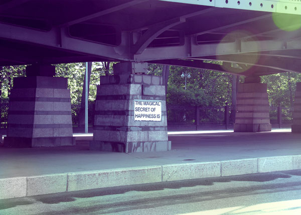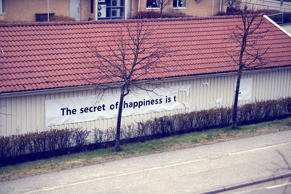 I caught this in two separate tweets this week, one from @fjfonseca and in another one from @marysoul. Thank you my friends! Of course, on the first picture below, the answer to happiness is ripped off the sign. Hmm… do you think that was done on purpose? It was quite ingenious if it was because people are having a lot of fun filling in that blank. Enjoy!