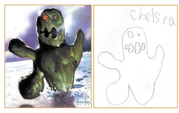 What’s unique with David’s interpretations is that he never diverts from the original drawing. He keeps everything just the way they are, even down to the exact outlines and features. Everything is there but he adds, should we say “body” to the creatures and freakers.