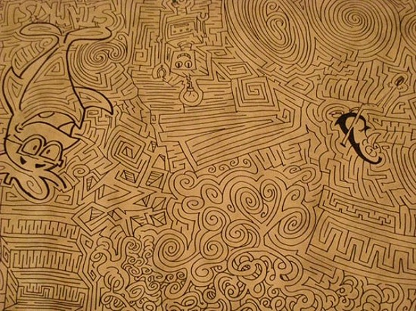 If you are a fan of doodling, you’ve probably hand-drawn a maze at some point in your life, right? I know I have, but I’ve never drawn any kind of maze like this before. Just to give you an idea about how big this will be when it’s finished, it will take the solver around 40 hours just to get from the beginning to the end. It’s conceivable that the person solving it could spend an hour on the wrong path before discovering that it’s not the right way to get to the end.