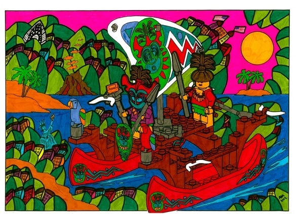 These wonderful and colorful paintings are created by talented artist Aurélie Montfrond, and they are certainly worth a mention. To me, they first came across as kind of coloring book-ish, but I reevaluated my first impression when I saw the intricate drawings of the houses in the background. It’s certainly a work of art worthy of every geeks attention. The series of paintings is called Little Cities & Legos, and it illustrates what is most likely going through a kid’s mind when he or she is playing with Lego. The mind is a wonderful creation. It has the capability of filling in the blanks to create a more populated and lush world when the visual world just doesn’t cut it.