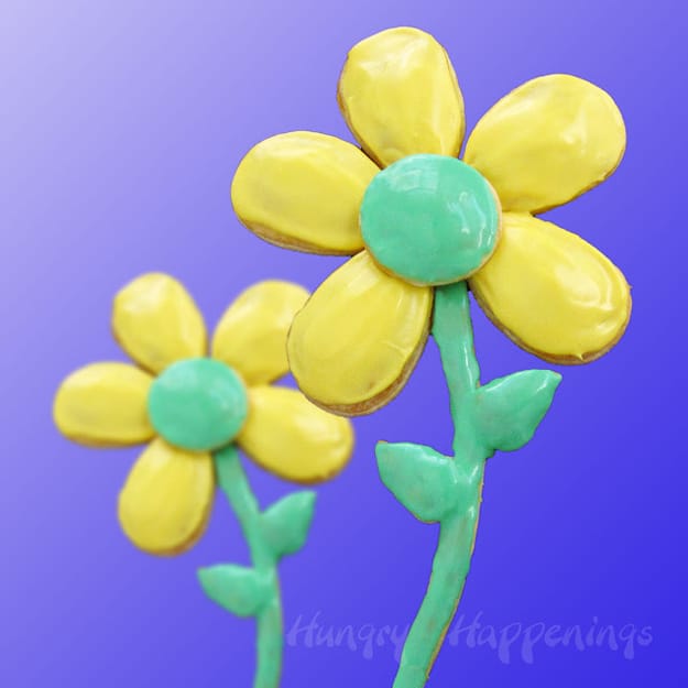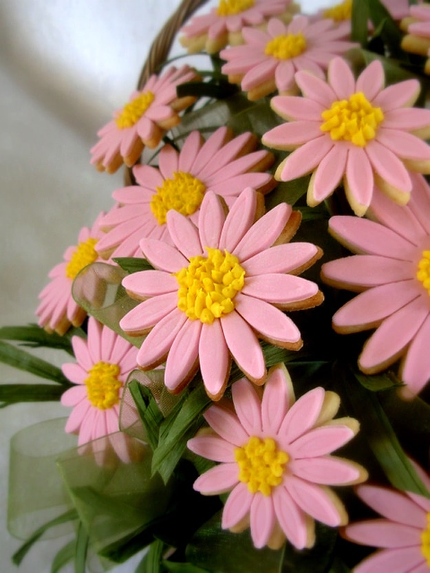 The second style is more like creating realistic flower cookies that you can actually use to create a bouquet. I’m blown away by how real these flowers look. These were created by the very talented Joanie at Blossomedge. Creating these cookie bouquets is her specialty, and it shoes. You can get the complete recipe and directions at A Bouquet of Daisy Cookies. Yum!