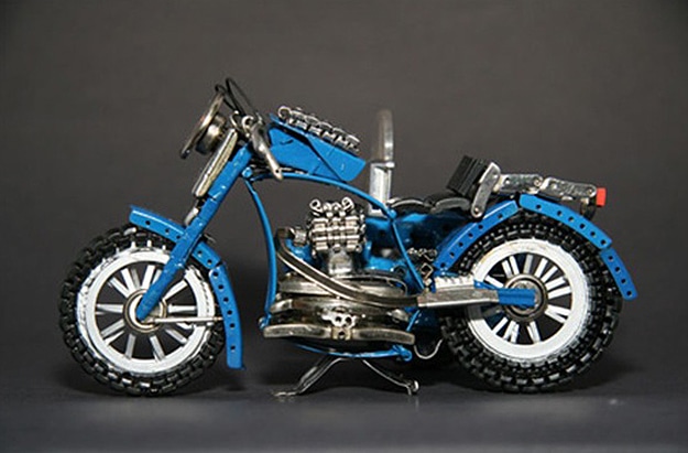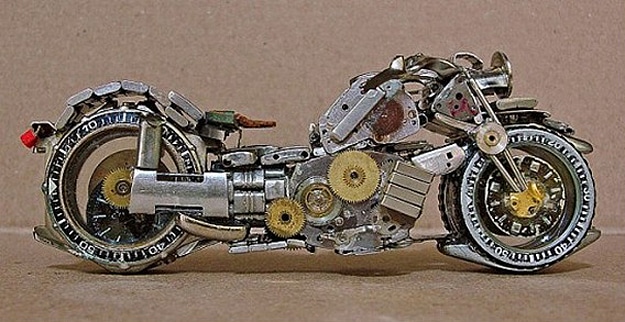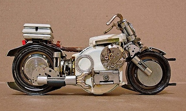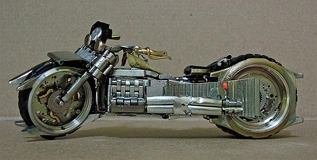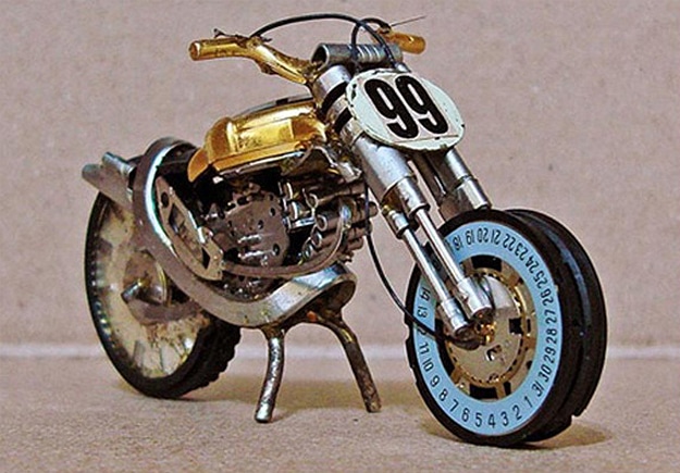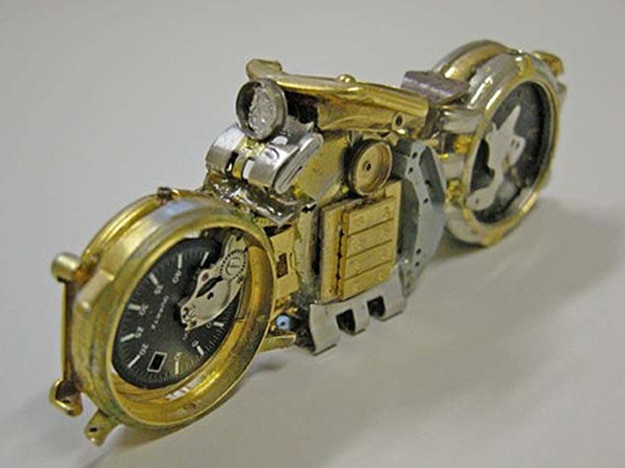 When I first saw these little motorcycles made out of old watches, I thought it was just about the most creative way I’d ever seen to give an old watch a new life. These watches were created by Jose Geraldo Reis Pfau, a Brazilian artist. He’s been playing around with motorcycles and sculpting since the 1960s. He creates these on the weekends, and his collection now exceeds 200 unique antique-looking watch motorcycles. They consist of metal, plastic, glass, silver and sometimes even gold. They aren’t for sale yet, but he hopes to sell them sometime soon. You can learn more about Jose by visiting ArtePfau.