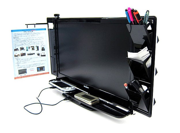 Today I discovered this LCD Monitor Hub Station designed to help us junk magnets get organized. According to Red Ferret, “It gives you three pockets, a document holder and a four port USB hub without taking up much space at all.” Hmm… the more I look at this thing, the more I think it would annoy me. I would probably just find a way to transport my mess closer into my view and onto my monitor instead of getting rid of it. As a matter of fact, in order to get organized, I probably need the opposite of this. I need a monitor that is clean and sleek and a desk with no drawers. That way, I will be forced to stay tidy, right? I don’t know. Maybe I should just accept the fact that I’m messy. If you think this hub station might help you, you can buy one here for about $61.
