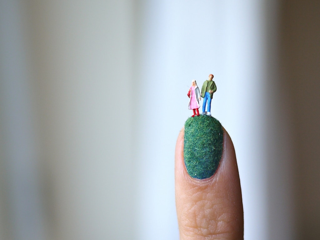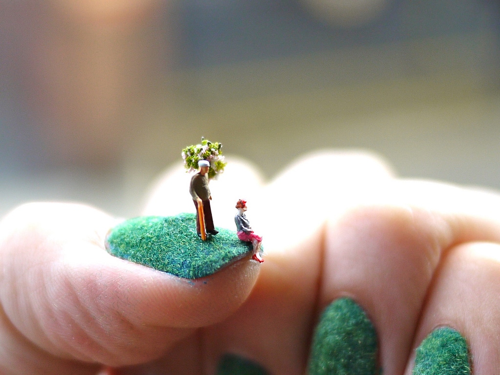 The art with miniature people that I’d like to share with you today isn’t that tiny, but that doesn’t mean it’s not extraordinary in its own way. Artist Alice Bartlett created this miniature world on her own fingertips. As it turns out, the reason Alice decided to take on this extreme nail art was only because she thought it would make an interesting photography collection. She was definitely right about that. When she was finished, she took the miniature people off her nails and glued them around her house to surprise people who come to visit.