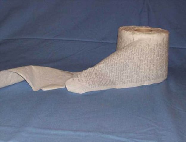 After all, the bathroom is a cozy small room with a relatively comfortable place to sit. Speaking of sitting on the toilet, did you read the story about the woman who lived on her toilet for 932 days? Seriously, she wouldn’t get off. I’m sure she would have appreciated this special toilet paper.