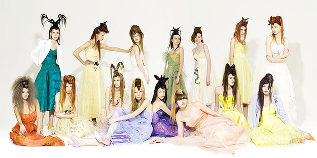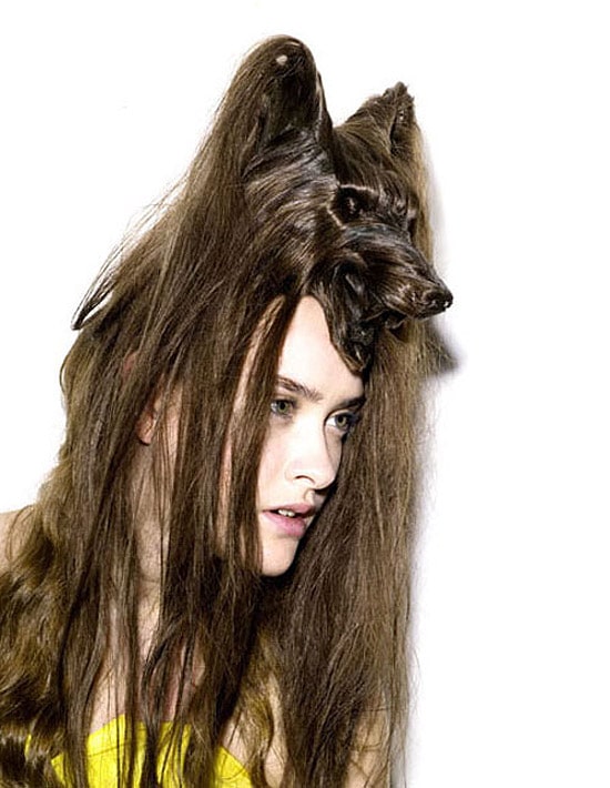 These hair hats are so much fun! Japanese designer, Nagi Noda, created them in her typical eccentric style. Nagi died a few years ago at the young age of 35 after complications in surgery after a car accident. I was a fan of her outrageous art and style, and when I was reading about her today, I discovered she even planned her own fashion for her own death.