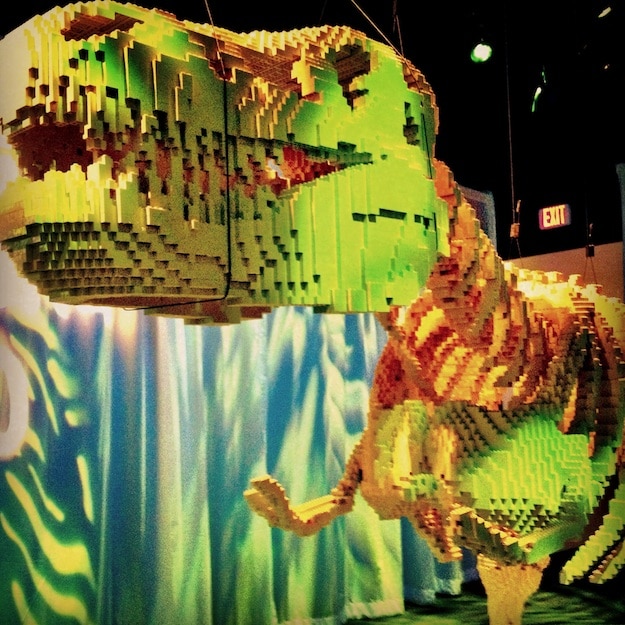 There are several rooms to the exhibit. There’s a room for LEGO art and a room for sculpture. There’s a room called “Metamorphosis,” featuring original artwork like Sawaya’s famous piece called “Yellow,” envisioning a man ripping open his chest and spilling his LEGO guts onto the counter. There’s a dinosaur room with a giant 20 foot Tyrannosaurus Rex that took an entire summer to build, each bone pieced together with over 80,000 LEGO pieces.