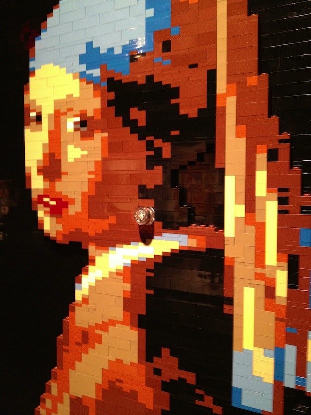 At the exhibit, you can see a LEGO art version of Michelangelo’s David (that took 4 weeks to build, 12 hours a day with 16,000 LEGOs), a plastic pieced-together Venus de Milo, a staggeringly precise and three-dimensional version of Klimt’s “The Kiss,” “American Gothic,” a massive Easter Island Moai head, Queen Nefertiti, Vermeer’s “Girl with a Pearl Earring,” a portrait of Alfred Hitchcock, and so many more. The mind boggles.
