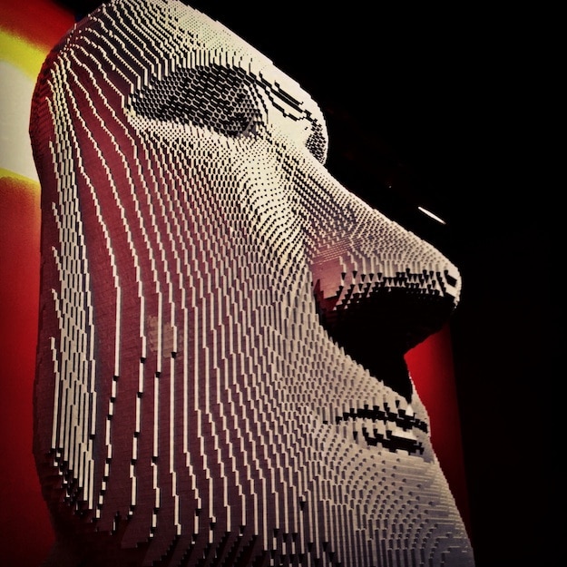 Ever puzzle over the smile of a LEGO Mona Lisa? Now you can. Only, if you ogle at the exceptional LEGO reproduction for too long, the famous smirk begins to feel a tad more pixelated. If you haven’t visited The Art of the Brick exhibit at the Discovery Museum in Times Square, New York City, I highly recommend making a pilgrimage to see the best of the best in LEGO art and brick-built dinosaurs.